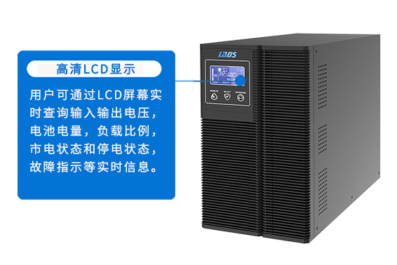 用戶可通過LCD屏幕實時查詢輸入輸出電壓,電池電量,負載比例,市電狀態和停電狀態,故障指示等實時信息。