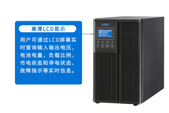用戶可通過LCD屏幕實時查詢輸入輸出電壓,電池電量,負載比例,市電狀態和停電狀態,故障指示等實時信息。