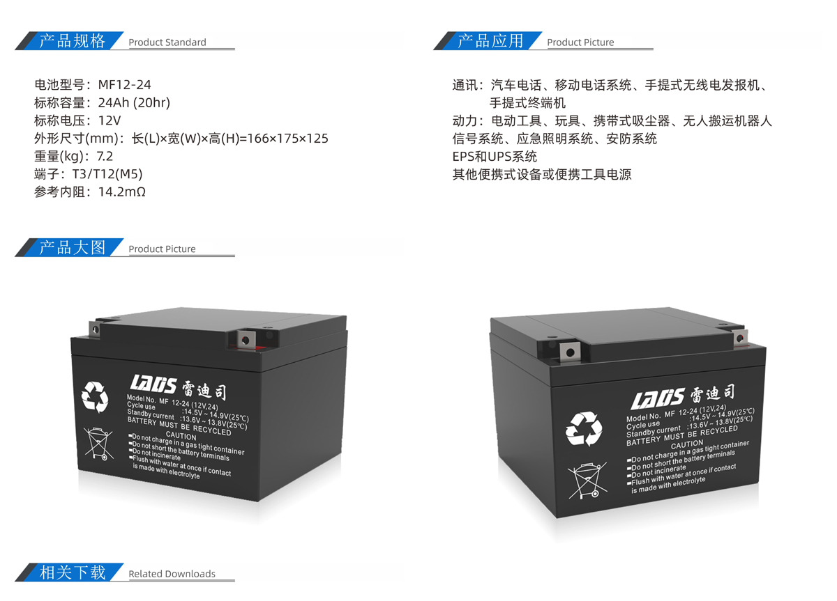 雷迪司MF12-24 12V 24AH閥控密封式鉛酸免維護蓄電池