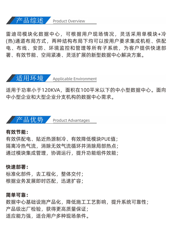 雷迪司冷通道單排機(jī)柜微模塊數(shù)據(jù)中心機(jī)房解決方案