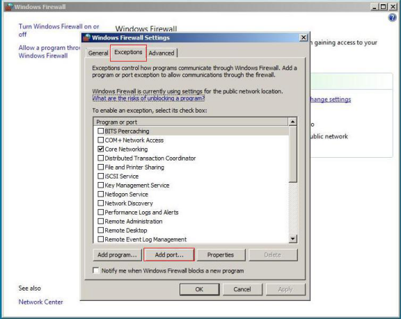 4. 選擇“例外”,單擊“添加端口”按鈕,如圖1-4所示: